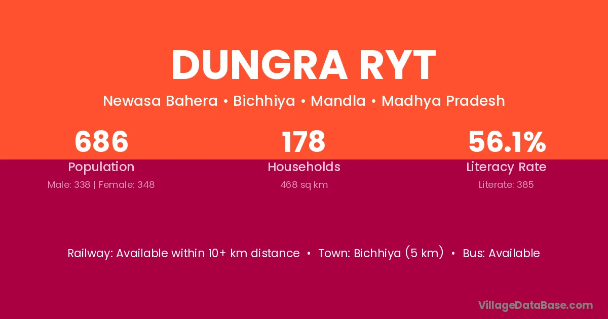 Bichhiya (5 km) is the nearest town to Dungra Ryt village for major economic activities and is located approximately 5 km away.