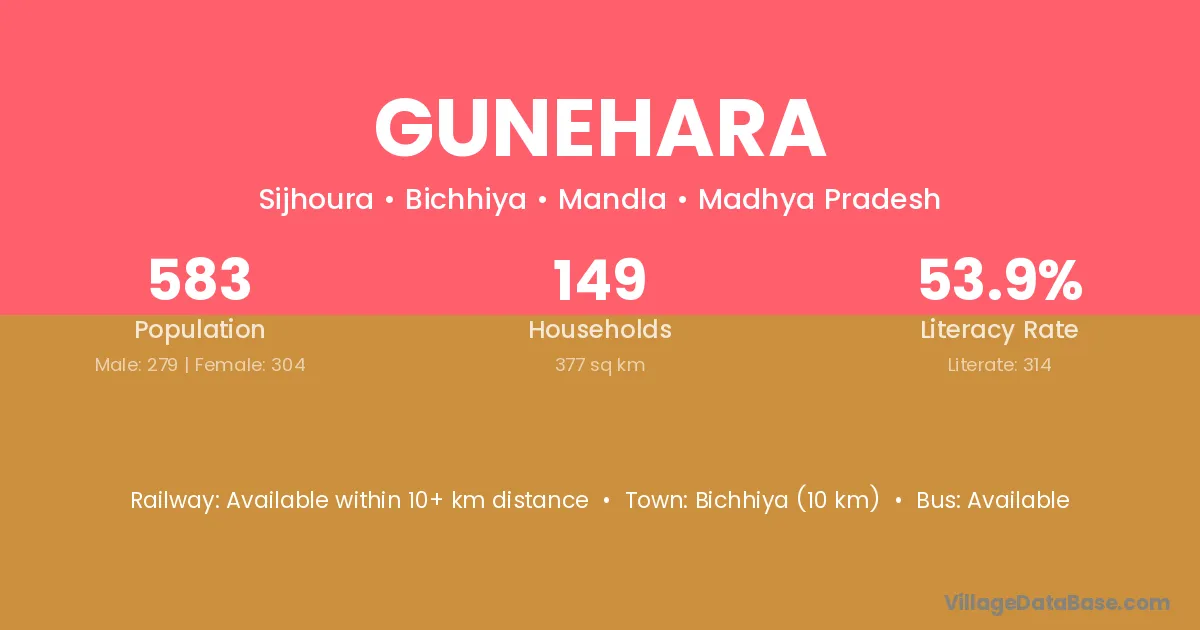 Bichhiya (10 km) is the nearest town to Gunehara village for major economic activities and is located approximately 10 km away.