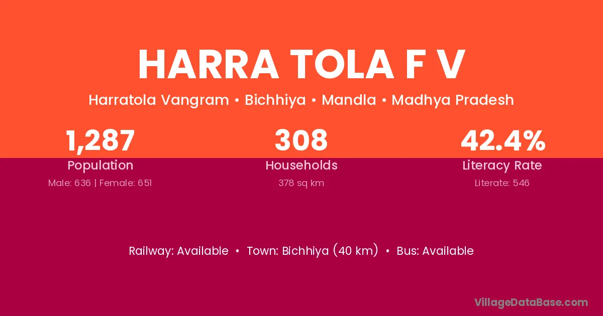 Bichhiya (40 km) is the nearest town to Harra Tola F V village for major economic activities and is located approximately 40 km away.