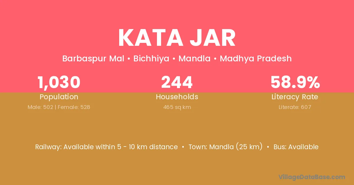 Mandla (25 km) is the nearest town to Kata Jar village for major economic activities and is located approximately 25 km away.