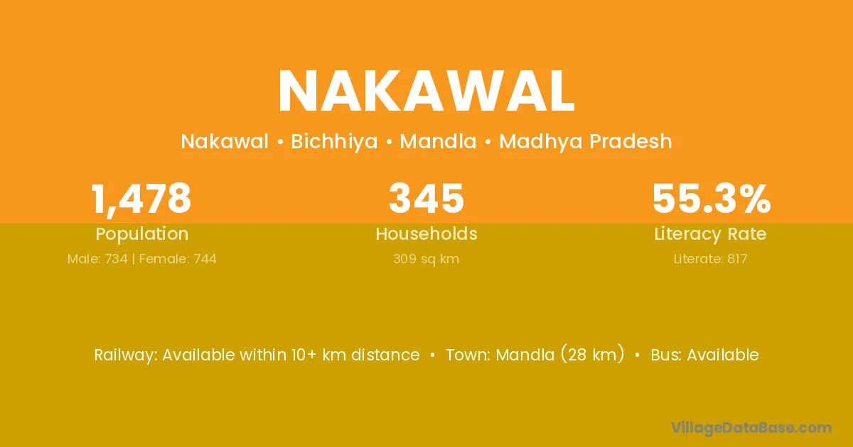 Mandla (28 km) is the nearest town to Nakawal village for major economic activities and is located approximately 28 km away.