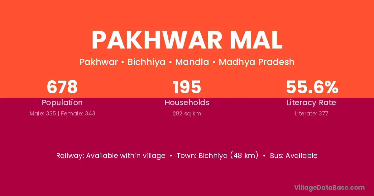 Bichhiya (48 km) is the nearest town to Pakhwar Mal village for major economic activities and is located approximately 48 km away.