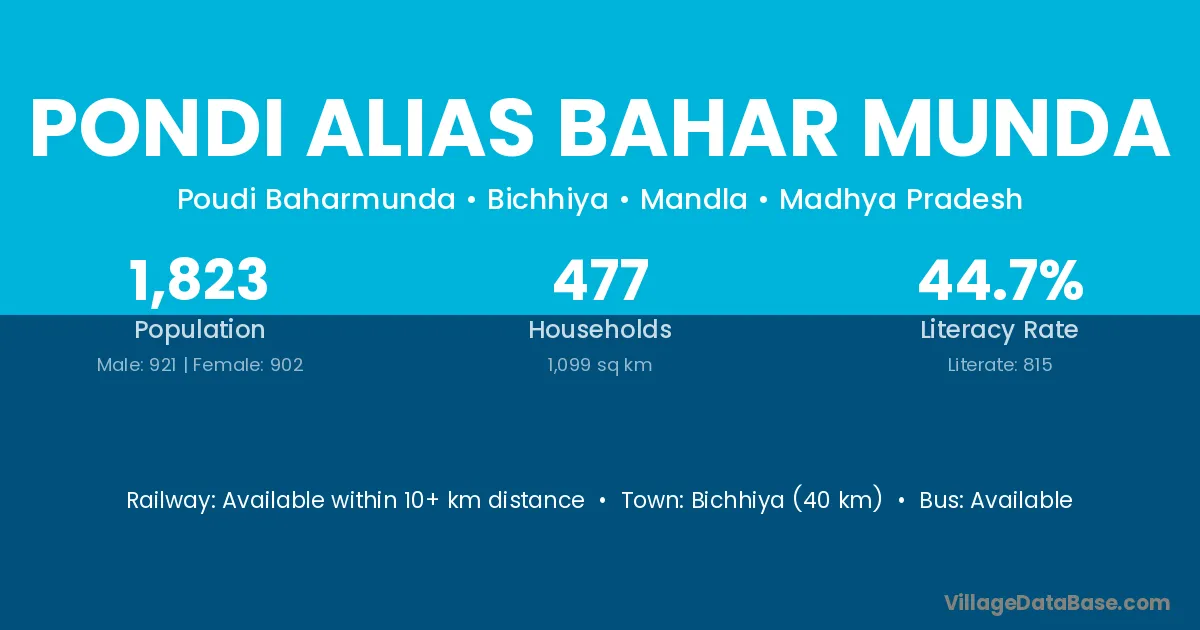 Pondi Alias Bahar Munda village is located in the Bichhiya Tehsil of the Mandla district in Madhya Pradesh .