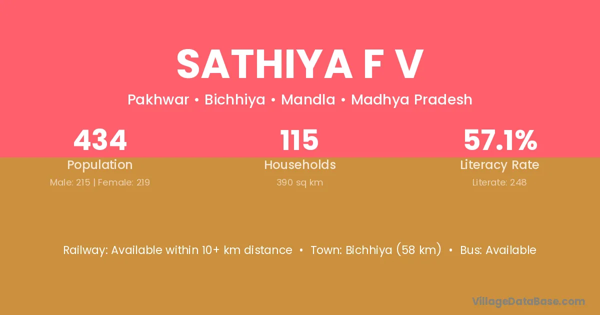 Sathiya F V village has a total population of 434 people, of which 215 are males and 219 are females.