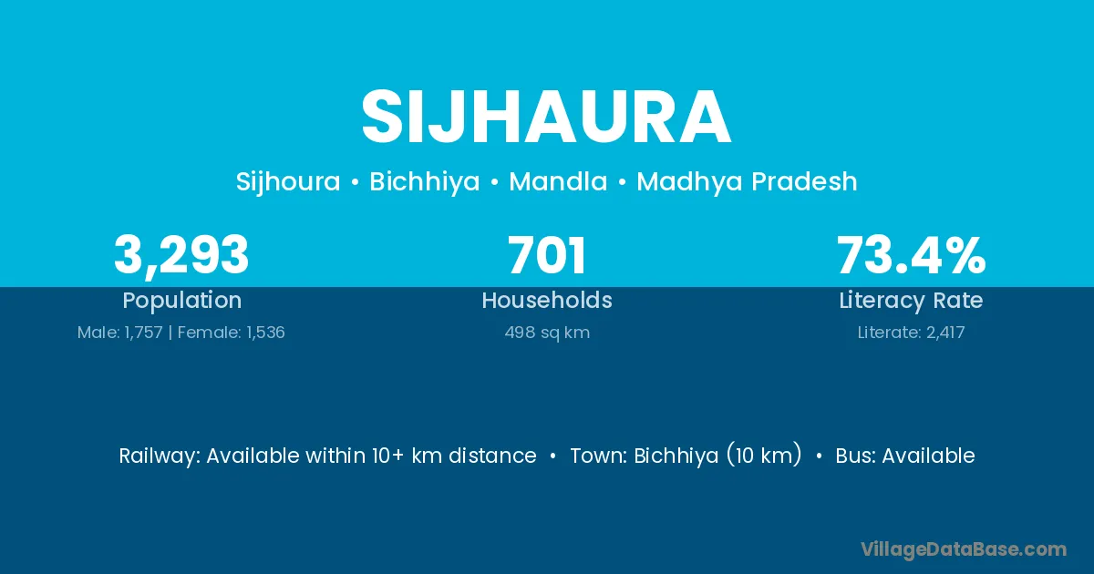 Bichhiya (10 km) is the nearest town to Sijhaura village for major economic activities and is located approximately 10 km away.