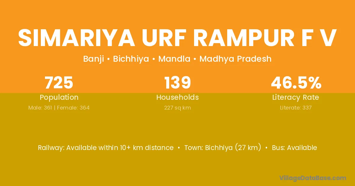 Simariya Urf Rampur F V village has a total population of 725 people, of which 361 are males and 364 are females.