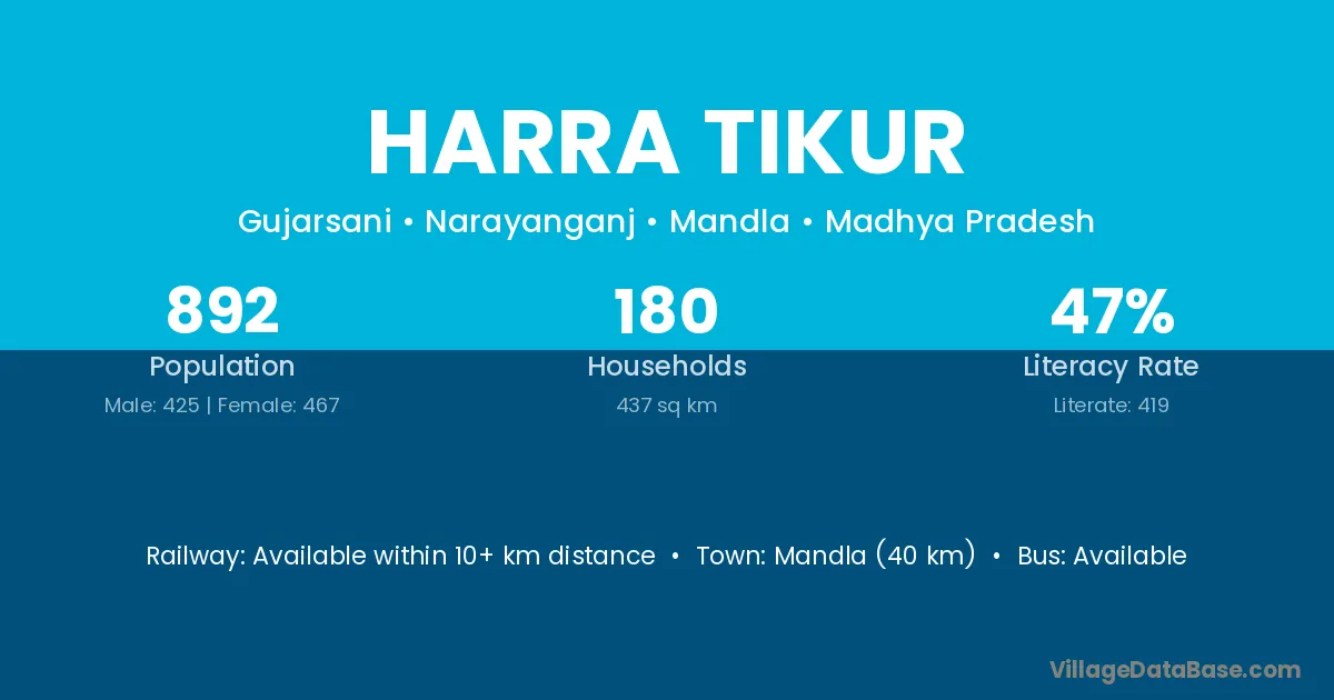 Mandla (33 km) is the nearest town to Harra Tikur village for major economic activities and is located approximately 33 km away.