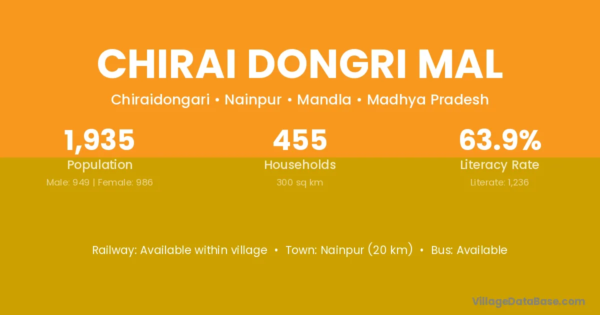 Nainpur (20 km) is the nearest town to Chirai Dongri Mal village for major economic activities and is located approximately 20 km away.