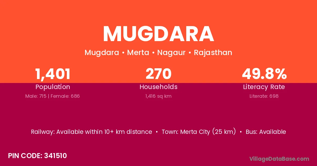 There are approximately 483 households in Mugdara village.
