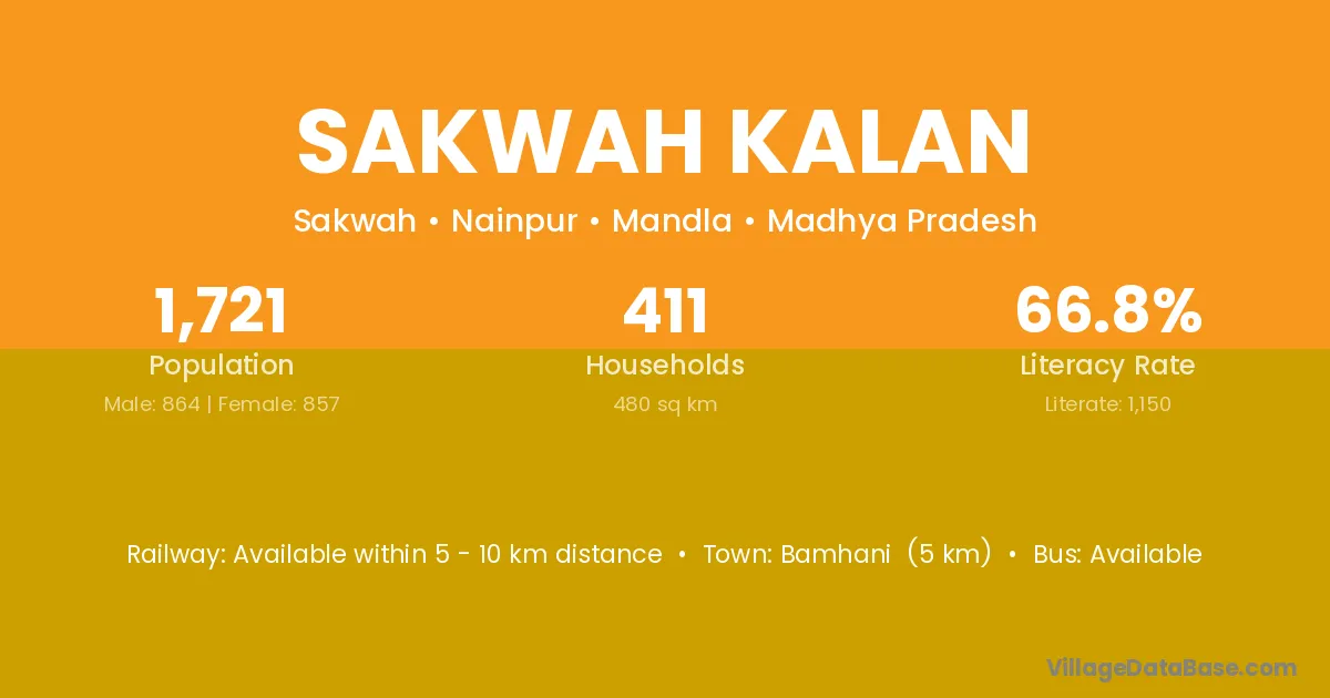 Sakwah Kalan village has a total population of 1,721 people, of which 864 are males and 857 are females.