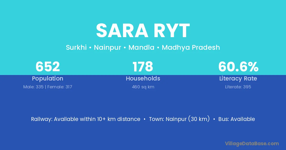 Nainpur (30 km) is the nearest town to Sara Ryt village for major economic activities and is located approximately 30 km away.