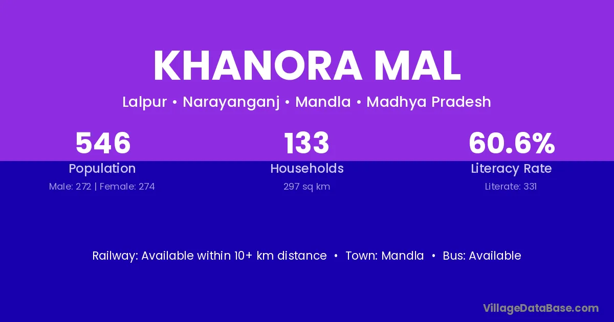 Khanora Mal village has a total population of 546 people, of which 272 are males and 274 are females.
