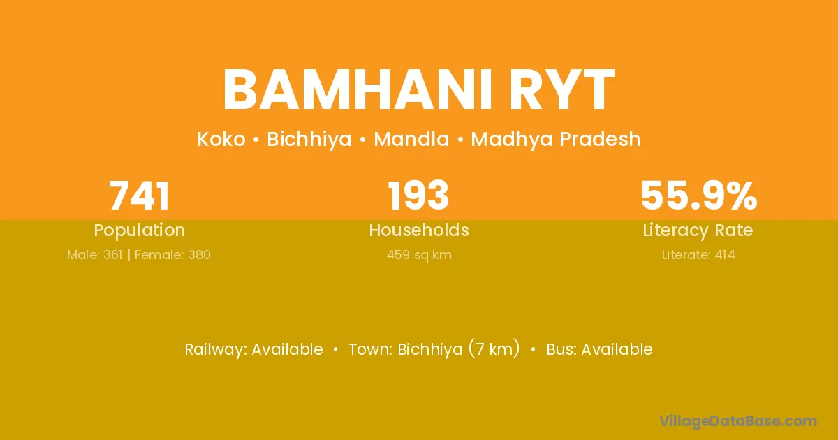 Niwas (8 km) is the nearest town to Bamhani Ryt village for major economic activities and is located approximately 8 km away.