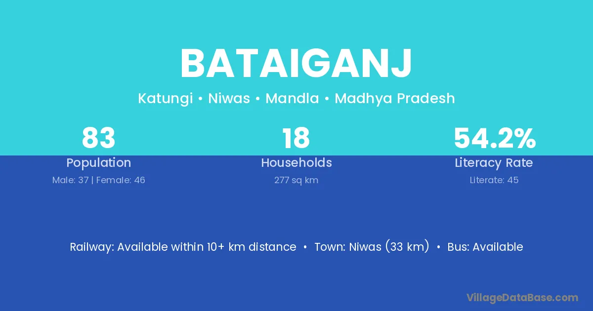 Niwas (33 km) is the nearest town to Bataiganj village for major economic activities and is located approximately 33 km away.