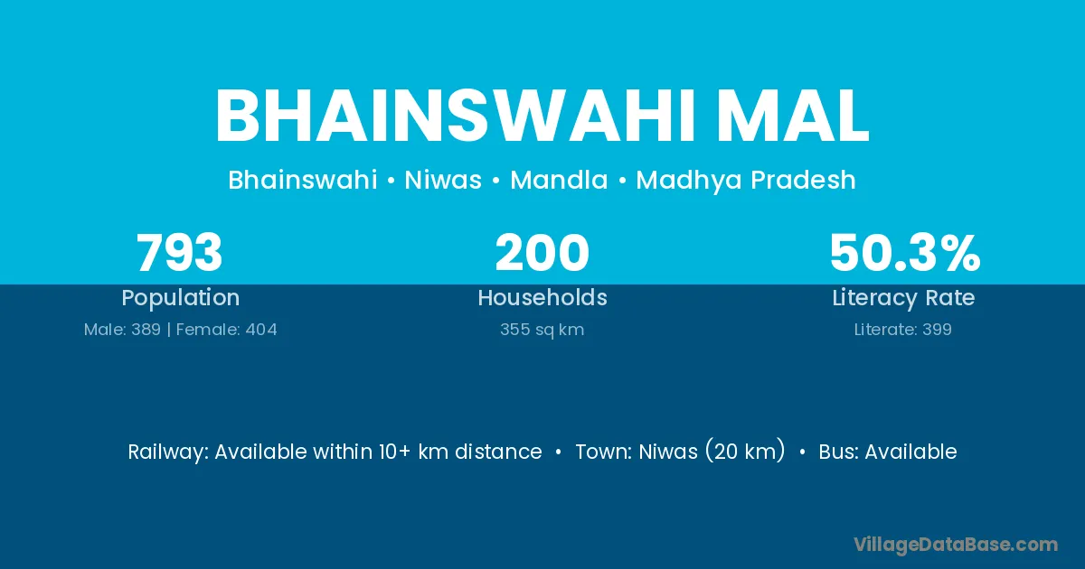 Niwas (20 km) is the nearest town to Bhainswahi Mal village for major economic activities and is located approximately 20 km away.