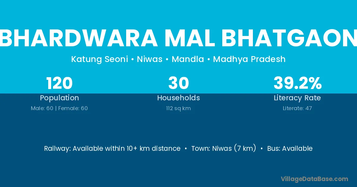 Bhardwara Mal Bhatgaon village has a total population of 120 people, of which 60 are males and 60 are females.