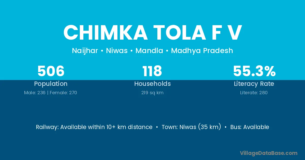 Niwas (35 km) is the nearest town to Chimka Tola F V village for major economic activities and is located approximately 35 km away.