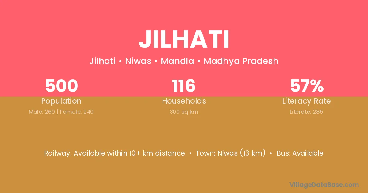 Niwas (13 km) is the nearest town to Jilhati village for major economic activities and is located approximately 13 km away.