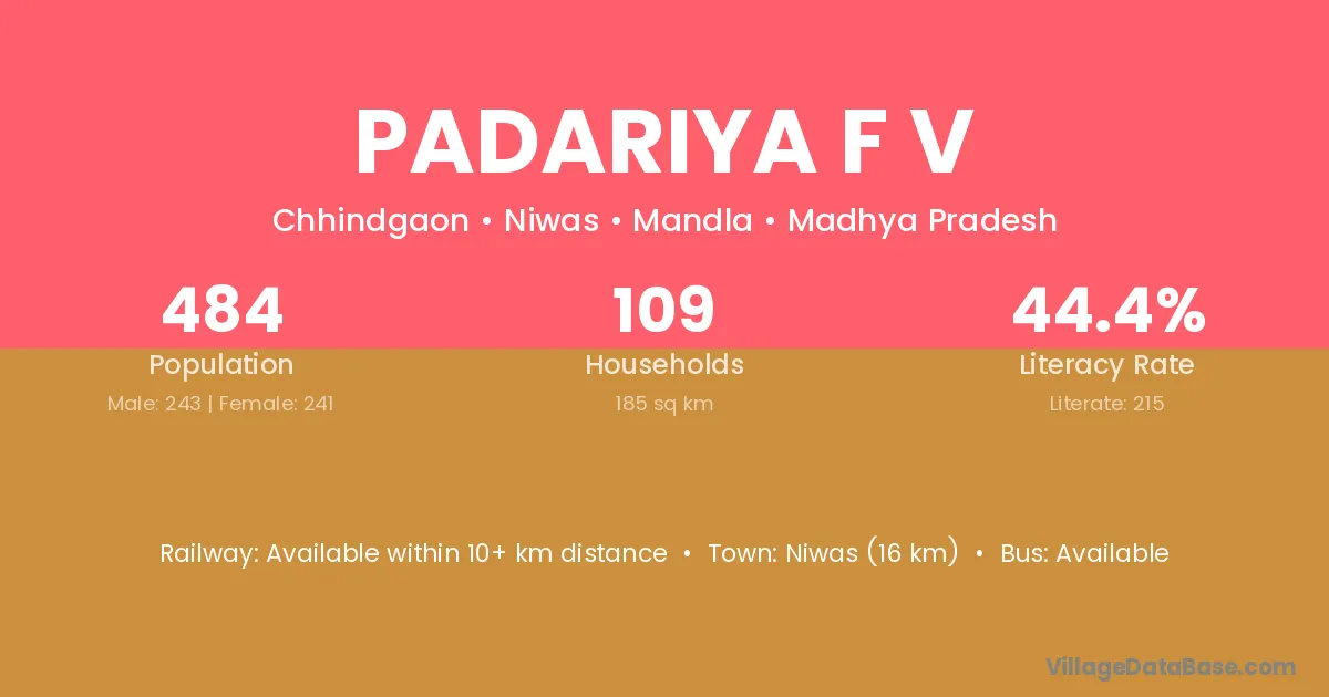 Padariya F V village has a total population of 484 people, of which 243 are males and 241 are females.