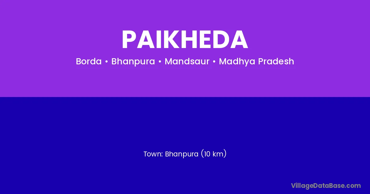 Bhanpura (10 km) is the nearest town to Paikheda village for major economic activities and is located approximately 10 km away.