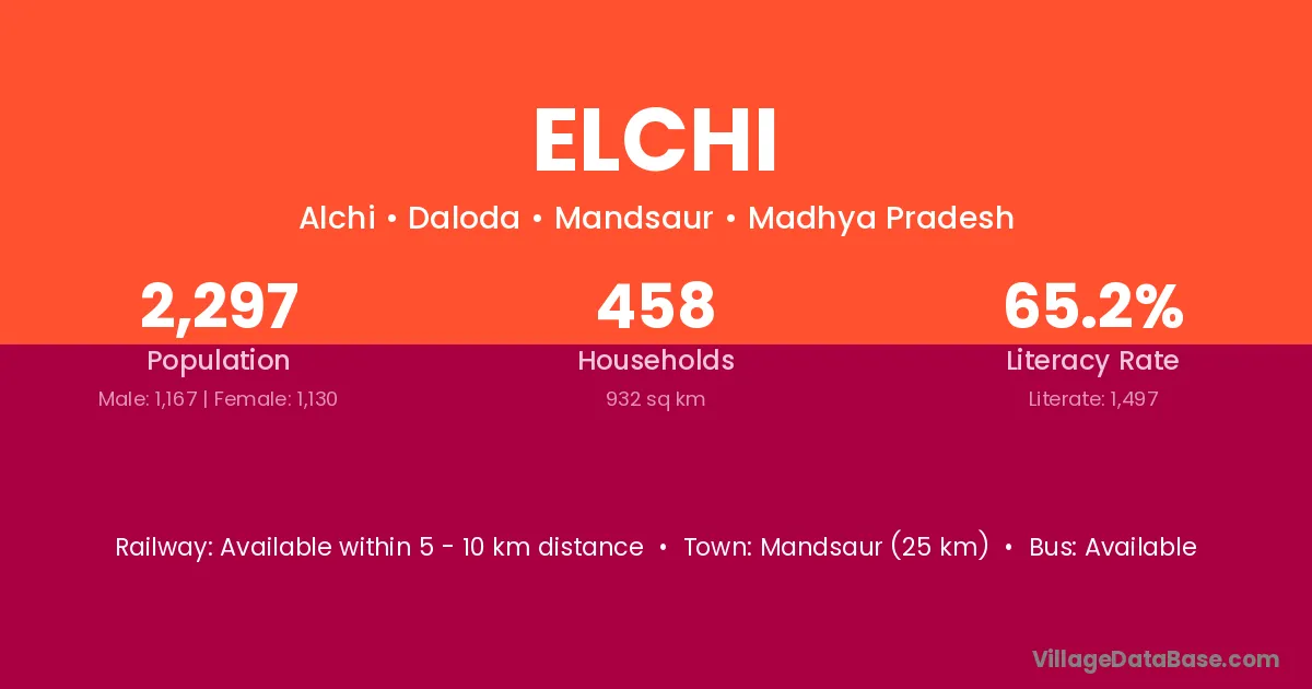 Mandsaur (25 km) is the nearest town to Elchi village for major economic activities and is located approximately 25 km away.