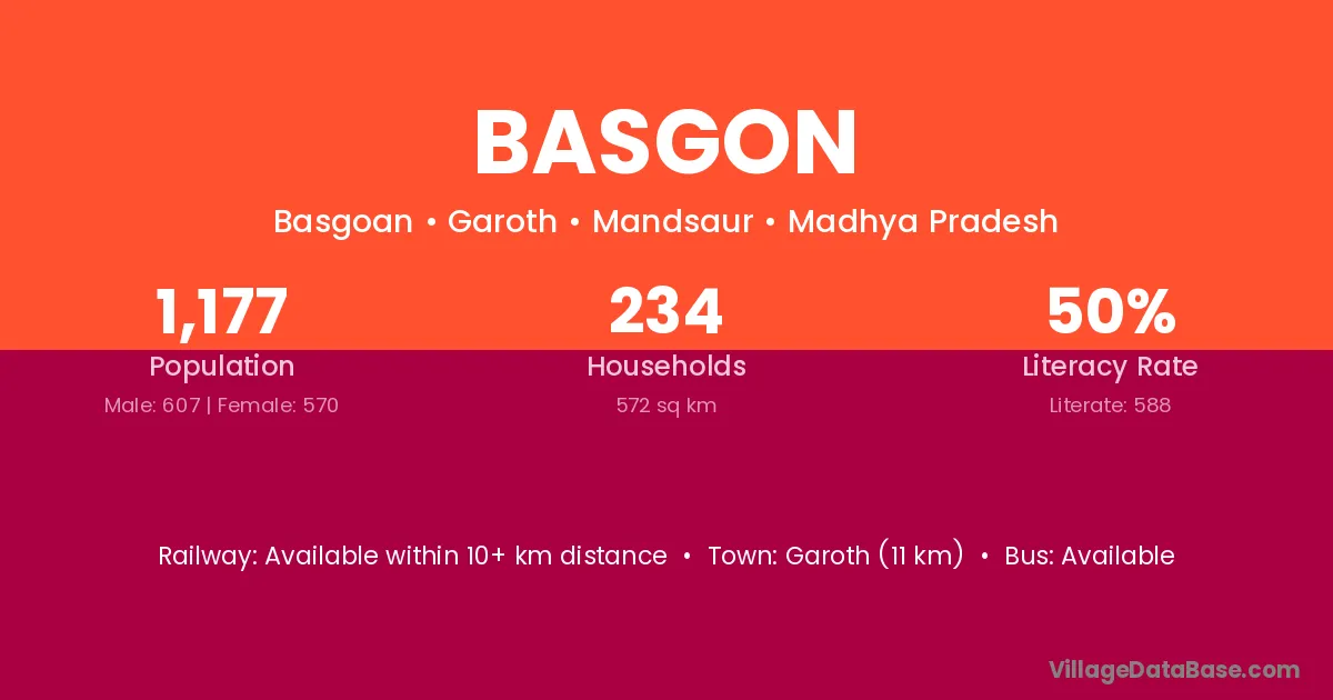 Garoth (11 km) is the nearest town to Basgon village for major economic activities and is located approximately 11 km away.