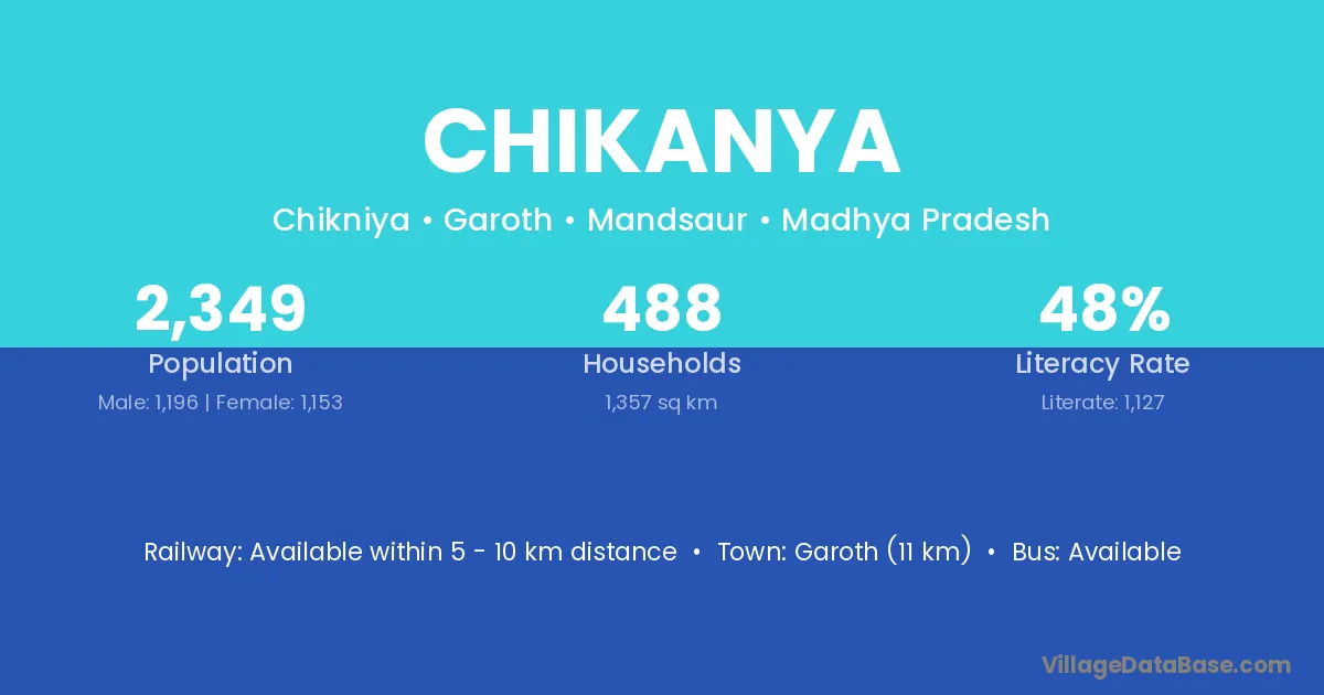Garoth (11 km) is the nearest town to Chikanya village for major economic activities and is located approximately 11 km away.