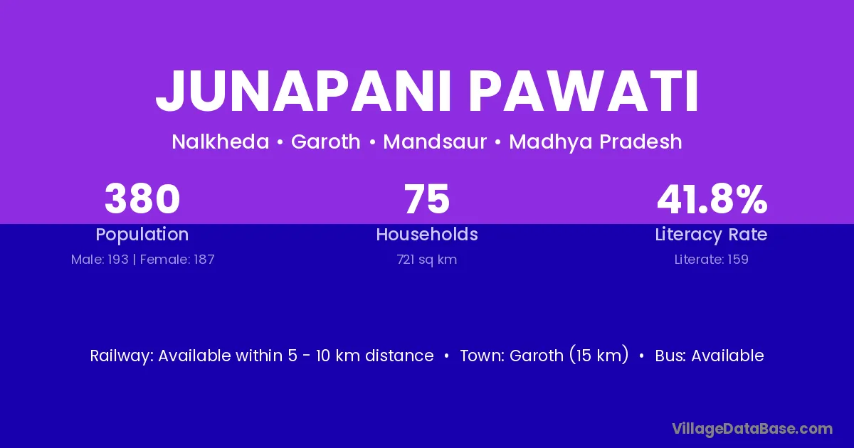 Garoth (15 km) is the nearest town to Junapani Pawati village for major economic activities and is located approximately 15 km away.