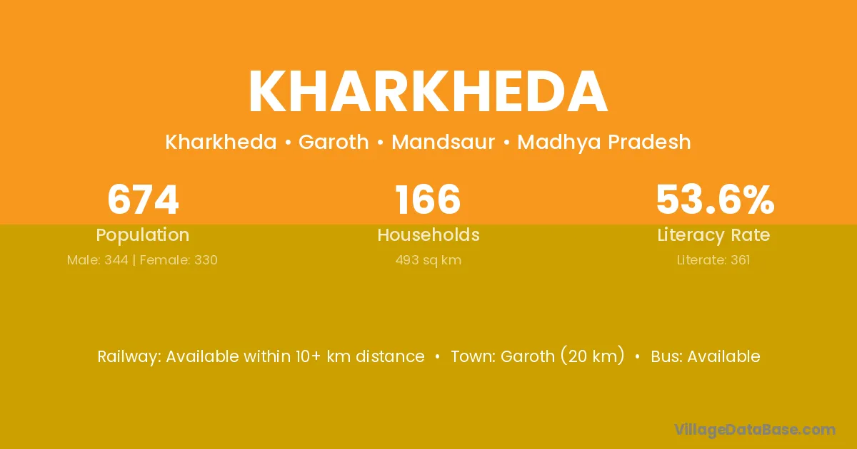 Garoth (20 km) is the nearest town to Kharkheda village for major economic activities and is located approximately 20 km away.