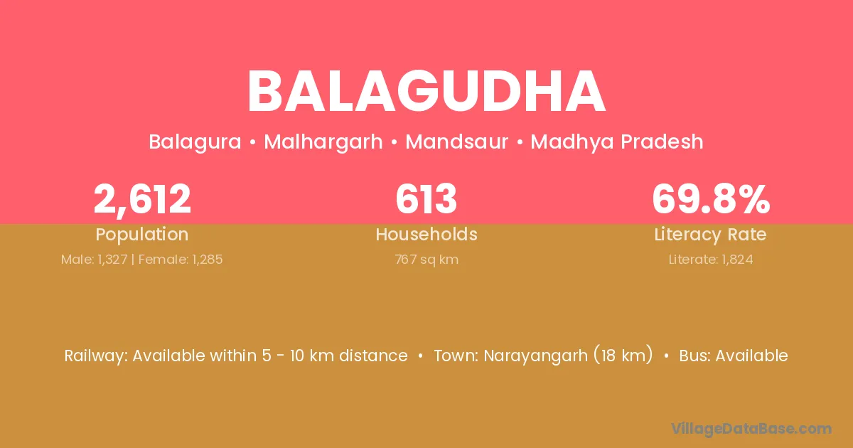 Balagudha village has a total population of 2,612 people, of which 1,327 are males and 1,285 are females.