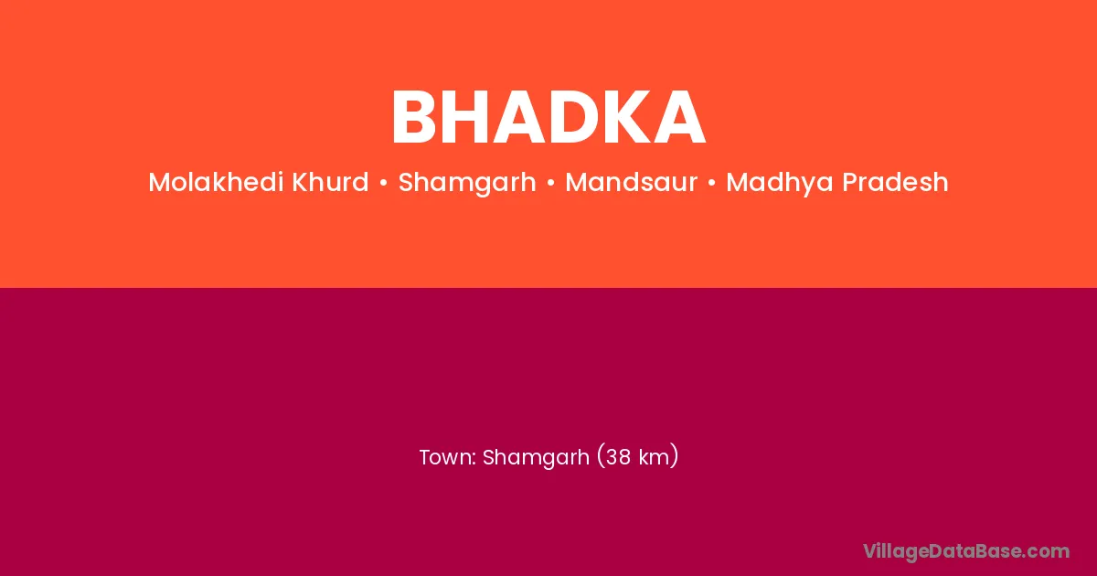Shamgarh (38 km) is the nearest town to Bhadka village for major economic activities and is located approximately 38 km away.