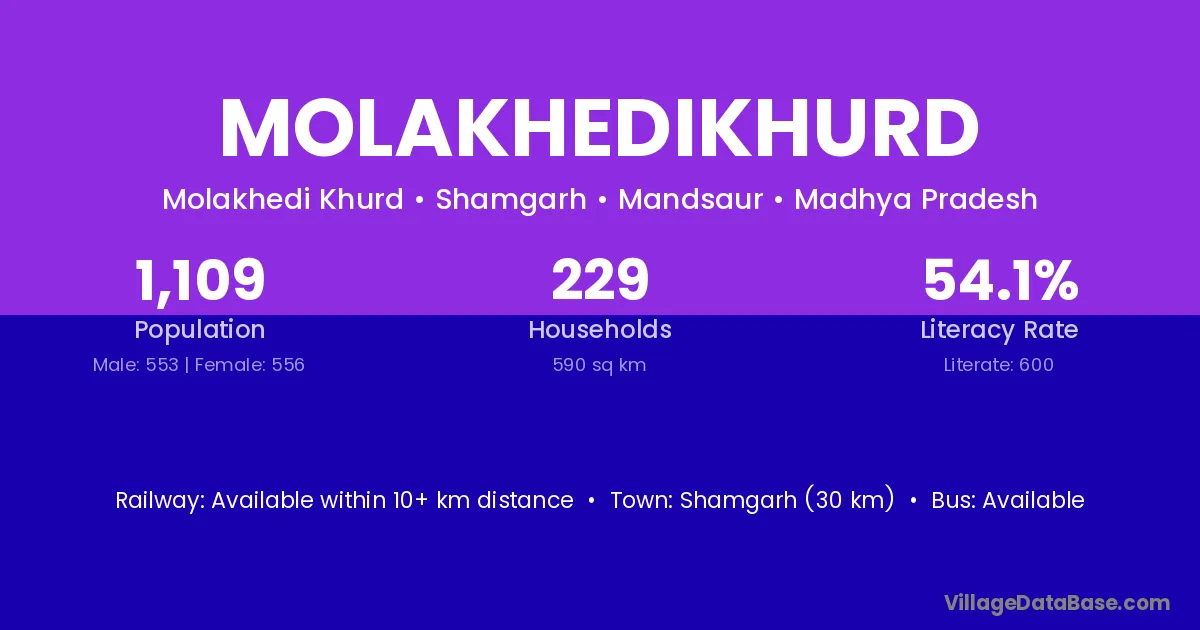 Molakhedikhurd village has a total population of 1,109 people, of which 553 are males and 556 are females.