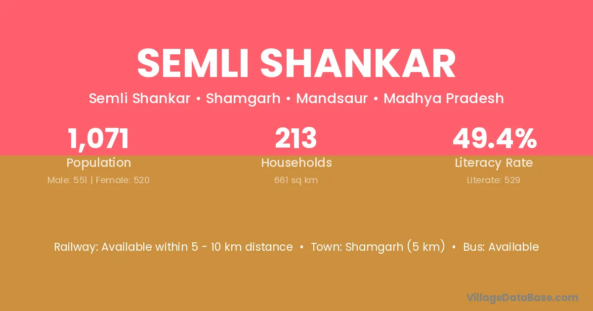 Shamgarh (5 km) is the nearest town to Semli Shankar village for major economic activities and is located approximately 5 km away.