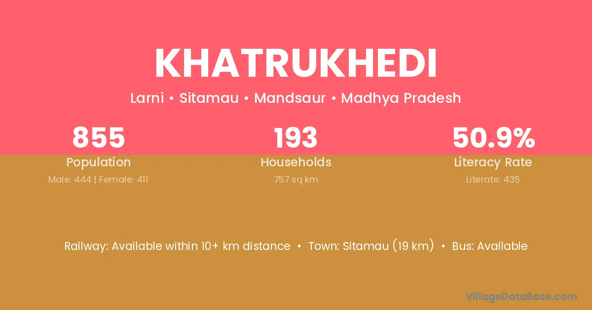 Sitamau (19 km) is the nearest town to Khatrukhedi village for major economic activities and is located approximately 19 km away.