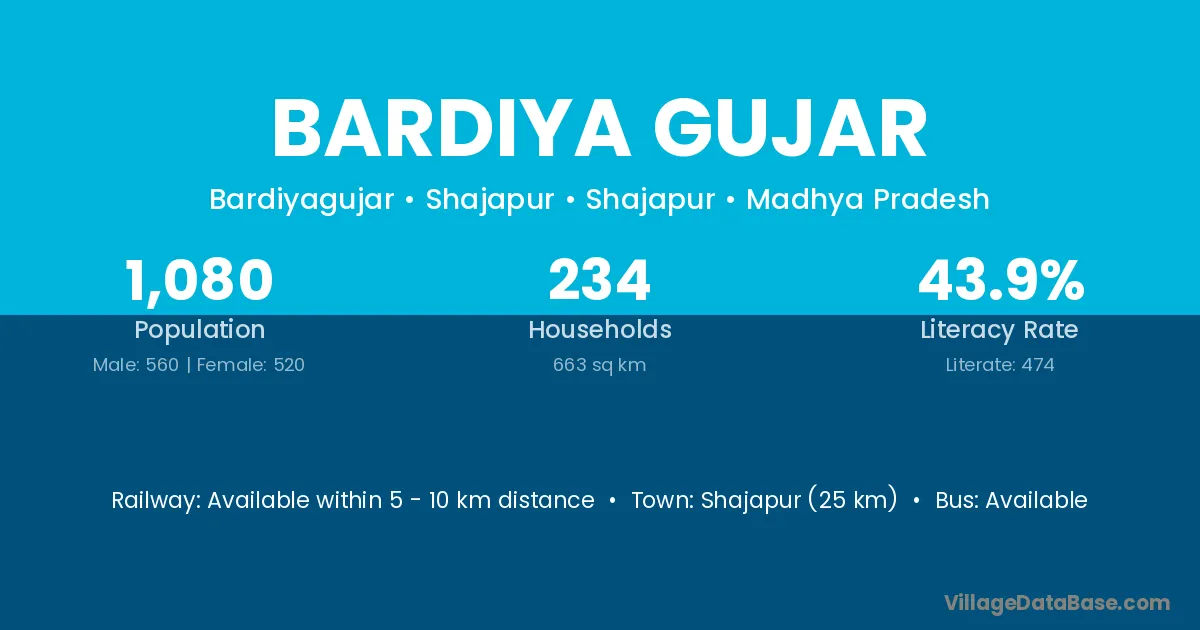 Suwasara (8 km) is the nearest town to Bardiya Gujar village for major economic activities and is located approximately 8 km away.