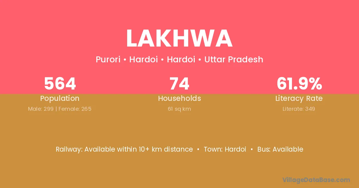 The literacy rate of Lakhwa village is 42.07%. Male literacy stands at 55.19% and female literacy at 27.76%.