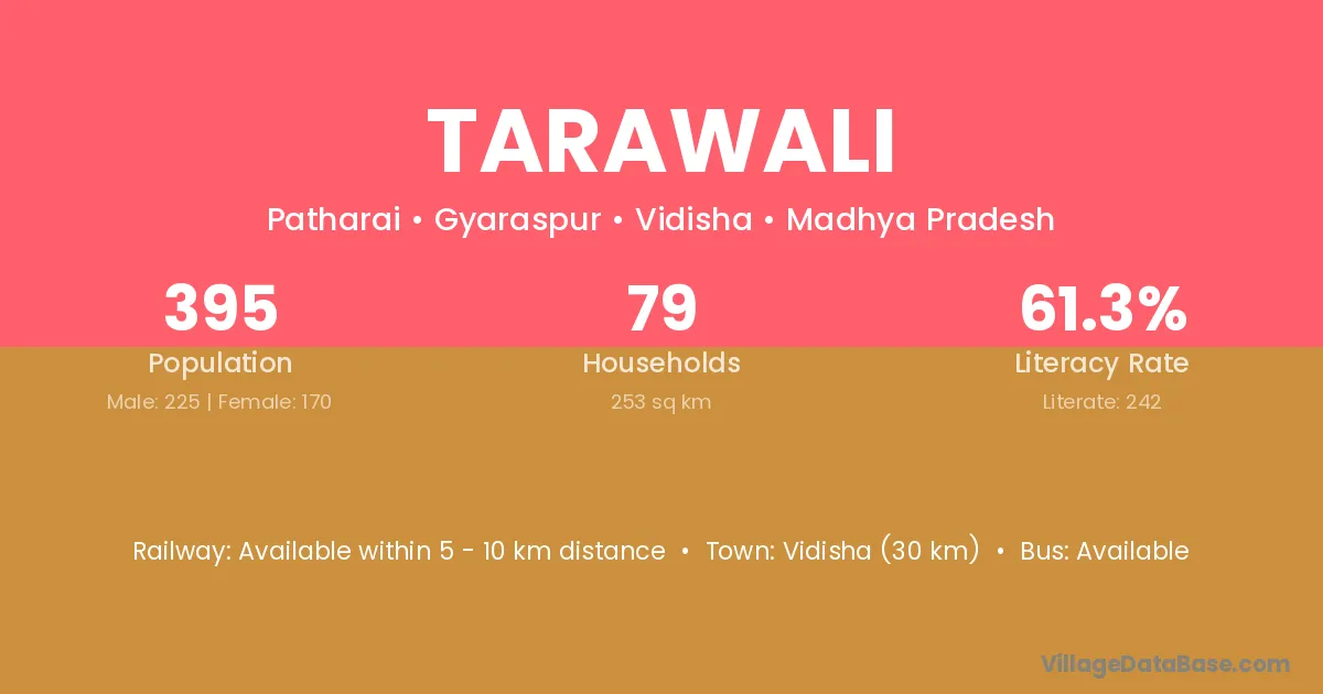 The literacy rate of Tarawali village is 34.61%. Male literacy stands at 44.85% and female literacy at 24.62%.