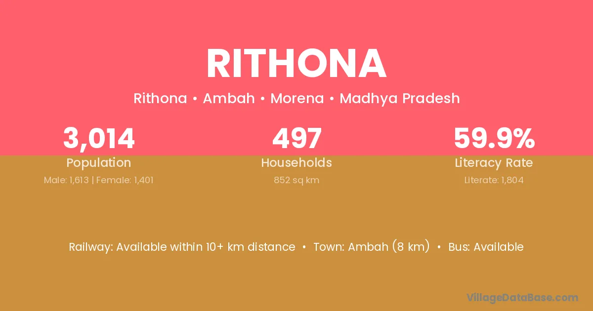 Ambah (8 km) is the nearest town to Rithona village for major economic activities and is located approximately 8 km away.