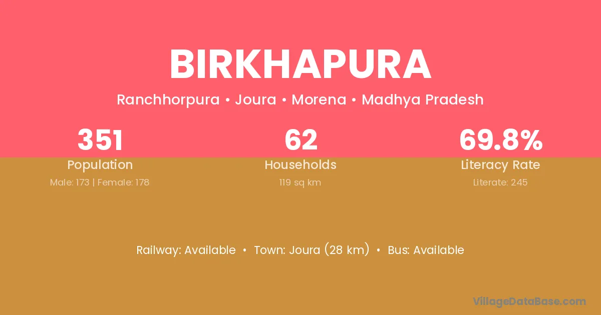 Joura (28 km) is the nearest town to Birkhapura village for major economic activities and is located approximately 28 km away.