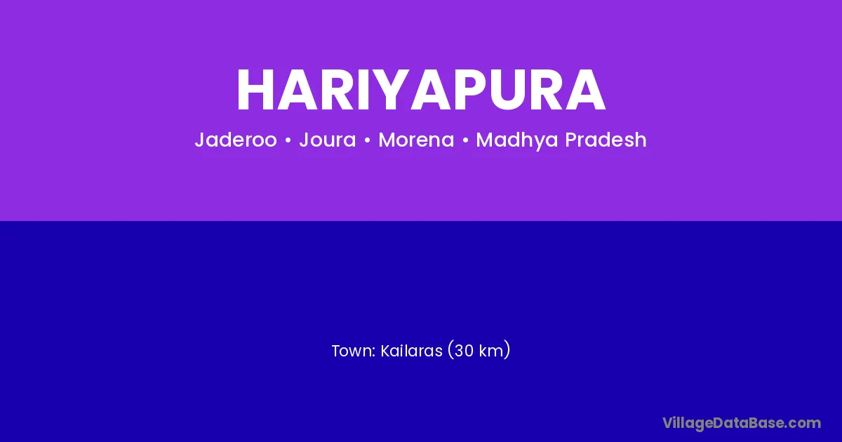 Kailaras (30 km) is the nearest town to Hariyapura village for major economic activities and is located approximately 30 km away.
