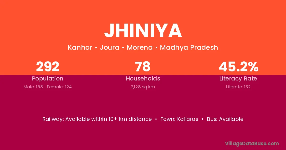 Jhiniya village has a total population of 292 people, of which 168 are males and 124 are females.