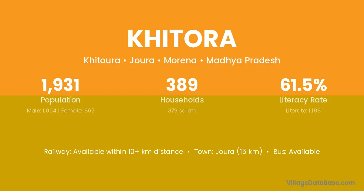Joura (15 km) is the nearest town to Khitora village for major economic activities and is located approximately 15 km away.
