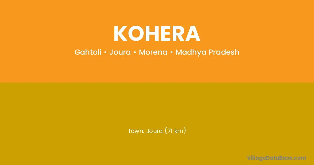 Joura (71 km) is the nearest town to Kohera village for major economic activities and is located approximately 71 km away.