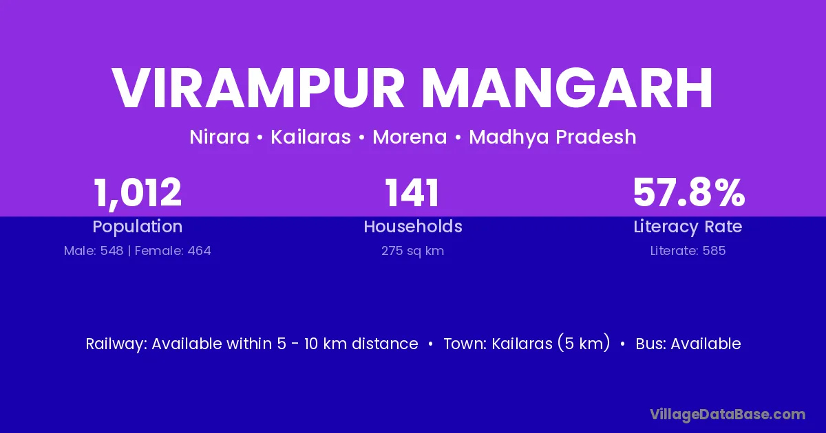 Virampur Mangarh village has a total population of 1,012 people, of which 548 are males and 464 are females.