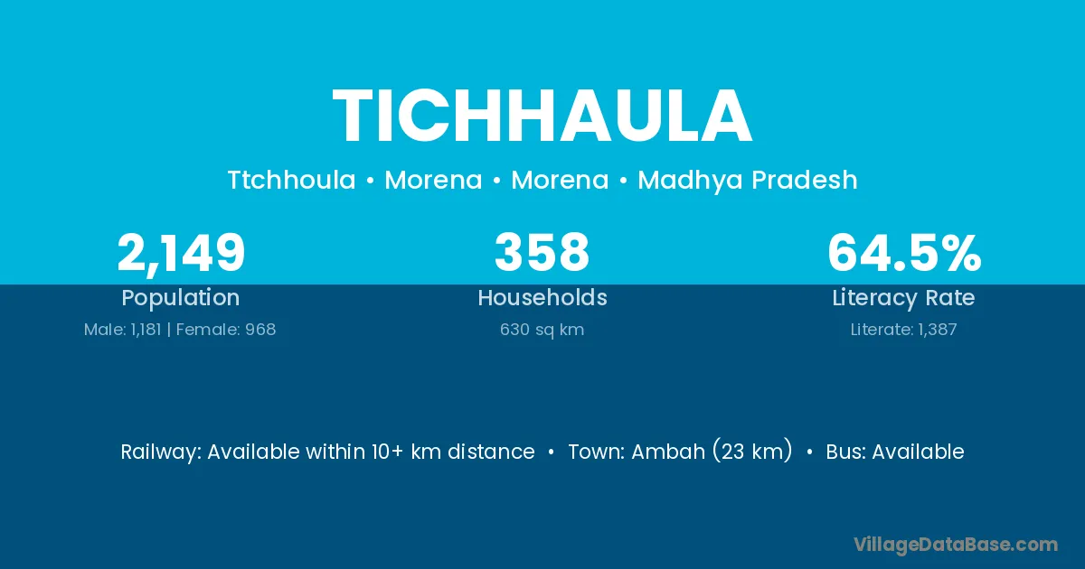 Ambah (23 km) is the nearest town to Tichhaula village for major economic activities and is located approximately 23 km away.