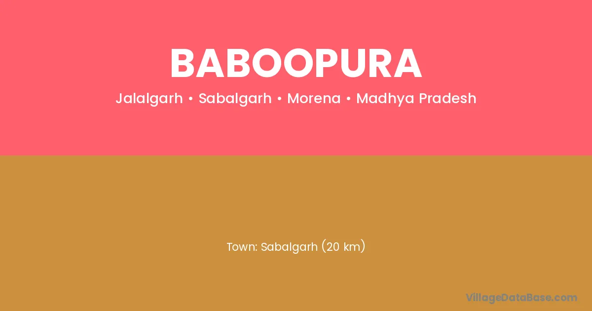 Sabalgarh (20 km) is the nearest town to Baboopura village for major economic activities and is located approximately 20 km away.