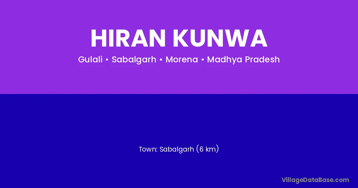 Sabalgarh (6 km) is the nearest town to Hiran Kunwa village for major economic activities and is located approximately 6 km away.