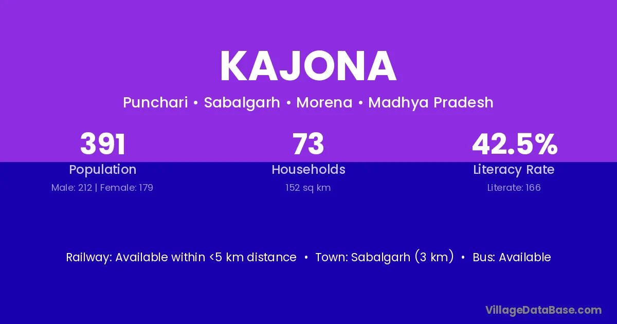 Sabalgarh (3 km) is the nearest town to Kajona village for major economic activities and is located approximately 3 km away.