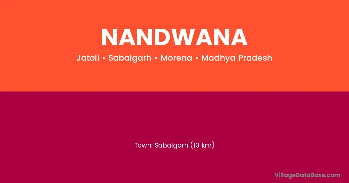 Sabalgarh (10 km) is the nearest town to Nandwana village for major economic activities and is located approximately 10 km away.