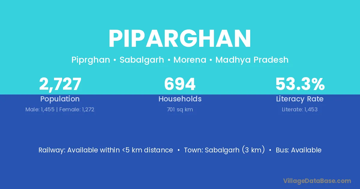 Sabalgarh (3 km) is the nearest town to Piparghan village for major economic activities and is located approximately 3 km away.